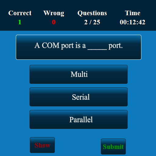 This Computer hardware app has been developed for testing your skills of Computer hardware. This app has more than 10,000 multiple choice questions and answers. This Computer hardware quiz app suits for all lower, intermediate and higher levels. The questions at all levels will be displayed randomly. The user can improve Computer hardware knowledge and user can score well in high school, college and competitive level examinations. This is a free version and you can be used in both offline and online.