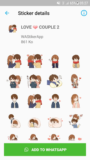 Couple Story Stickers Packs and Love Stickers and Romantic Stickers for WhatsApp? WAStickerApp provides Sticker Pack with many categories like Love Couple Stickers, Romantic Sticker, Text Stickers, Fairy, Teddy Love Stickers, Love Quote, Girls Nick Name Stickers, Boys Nick Name Stickers and many More.
