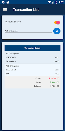 This app is used to maintain an credit sheet that allows you to create an Account and note down the credit Amount and the payment against that credit account