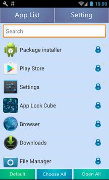 How to use App Lock Cube: just choose applocker Service from setting and set a passcode or you can change a type of lock to Pattern from setting also, then you can Check the app you want to lock it from Applist.