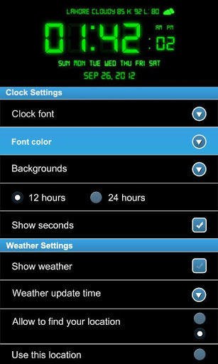 Droid Digital Alarm Clock Pro is a practical application which turns your Android Device into Beautiful Digital Clock, It helps for time management in many ways: Unlimited Colors Selection for your Clock Many Gorgeous Fonts Lots of background for your clock Multiple Alarms Multiple Events ShowHide seconds Select your favorite Stick Position for the Clock Select your song or even playlist as alarm Snooze ONOFF with time customizable Alarm triggers even when the app is not open Automatically refresh weather conditions in your area Shake your phone to toggle the flashlight Option for secret question for stop the alarm:: THEMES ::Elegant and versatile themes with power packed set of options. Droid Digital Alarm Clock supports different light or dark color schemes, custom gorgeous fonts, and different background choices::MANAGE EVENTS::Droid Digital Alarm Clock increases the productivity by outlining and structuring your day, events and meetings in the most efficient way.::WEATHER FORECAST::Droid Digital Alarm Clock integrated Weather forecast functionality automatically and continuously updates the weather conditions of your area. It helps you to plan your daily activities according to the expected weather conditions.:: CUSTOMIZE ALARM CONTROL::Sound Select the song you want to wake up. Alarm clock offers to create alarm playlist from your music libraryRecurring You can configure onetime alarm or recurring alarms. You can use the same time settings on consecutive days. It will wake you up repeatedly on set days and times.Flashlight In Dark, shake your mobile to turn it to flashlight.Wake you up even App is not open While your app is not open and the time comes to activate your alarm, Droid Digital Alarm Clock will wake you up with your favorite settings.:: Pro APP :: download Pro app to enjoy all features. Download Pro to remove adds. Get your copy here before price get higher https:play.google.comstoreappsdetails?idcom.CurioLogix.DAClockProWhat is new in v2.0.3 A beautiful app widget to place on screen Introduced new Interactive and cool Design A Preview in settings to quickly see your clock Supporting Mobiles as well as Tablets Introduced settings to update weather and location on fixed interval or even turn off. Cool Backgrounds AddedWhat is new in v2.0.4Improved widgetAdded widget for tabs Added widget for landscape tabFully Customizable widgetOptions to change widget setting from widgetOptions to create alarm from widgetShow Alarms icon if there is alarm set.Show weather on widgetShow temperatureShow your current location.Multiple colors support Multiple fonts support12 and 24 hour supportShow current day and date.