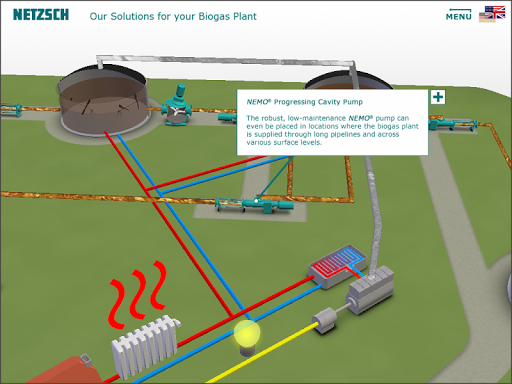 NETZSCH Environmental & Energy Processes Real Time 3D In this application you will learn how work our solution for your biogas plant, your biogas plant with cofermentation and also your wastewater treatment plant.