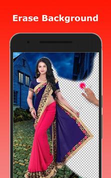 You can use Woman Fancy Saree Photo Suit Montage Background eraser option to erase unwanted background from your existing and new photos & selfies. There are two types of erasers available in this app. One is auto eraser and the other is manual eraser.