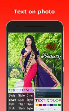 Apply color effects to get soft and sharp pictures in Woman Fancy Saree Photo Suit Montage and Add text using add text on photo option. Select text from the list of fonts. Text size can be increased or decreased and the text color can be changed. Background pictures can be used as a greeting card to convey wishes to your friends.