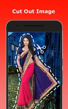 Another option is you can add any beautiful background from Woman Fancy Saree Photo Suit Montage Background collections. Otherwise you can use cut out tool to change background of your image. This app has world famous 50 beautiful background photos. You can set them with your photos and get natural effect like those were taken naturally in those Places.