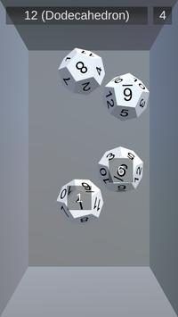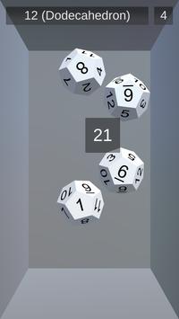 You can roll dice with 4, 6, 8, 10, 12, 20, 100, 24, 30, 48, 60, or 120 sides, and roll up to six at a time. Dice can be rolled by shaking the phone or tapping the screen. The total is automatically calculated and shown.