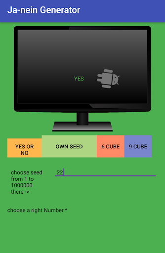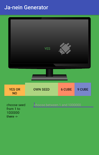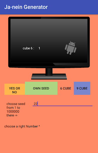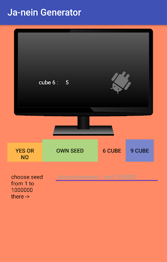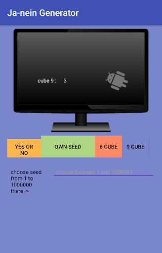 Ja - Nein Generator, ein 6er und ein 9er Würfel sowie ein Benutzerdefinierter Zufallsgenerator von 1 bis 10000000.