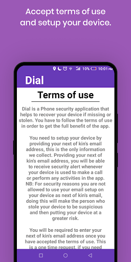 In the case of a stolen device it is very easy to track, At the time Dial app was installed on your device you'll be asked to provide your next of kin's email address. This next of kin's email address will be the destination to which the information about the location of your device will be delivered to. It is hightly recommended not to use your personal email address registered on your device, this is for the purpose of security. Ensure you seek a professional or the security agent of your country about your missing or stolen device before emberking on locating your device.