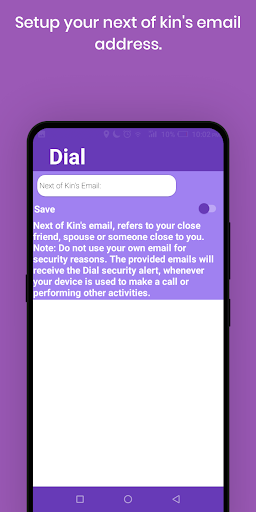 Next of kin's email: Next of Kin's email, refers to your close friend, spouse or someone close to you. Note: Do not use your own email for security reasons. The provided emails will receive the Dial security alert, whenever your device is used by unauthorized user.