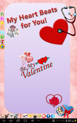 After installing, from inside DoodleWish just click on the stickers Icon/Button, the 3rd icon from the left, and then slide the slot-wheel to choose this Valentines1 pack.