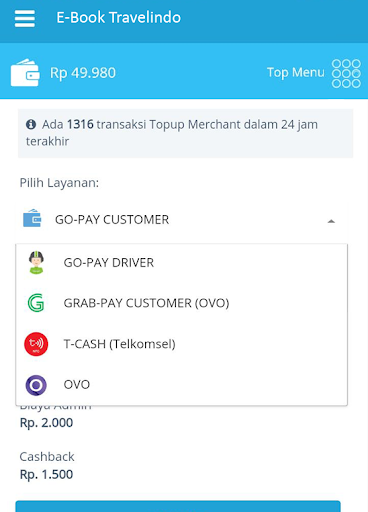 - Isi Ulang GOPAY(Customer dan Driver) dan GRABPAY