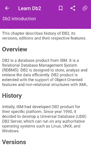 You can easily Learn DB2 by using this app. Basic DB2 is very easy to learn if you interested in DB2. This app has basic DB2 notes & tutorial.