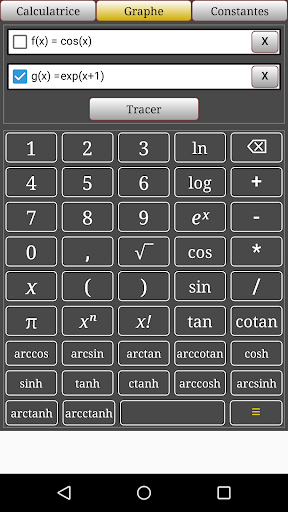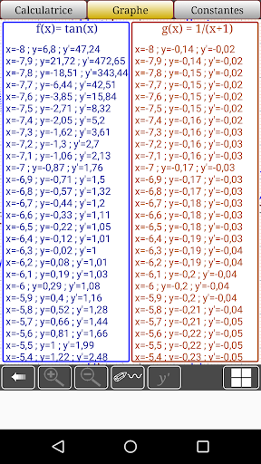 l'application permet de tracer votre équation (fonction) mathématique et sa dérivé, puis d’afficher les valeurs par pas de 0.1