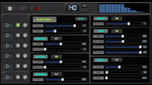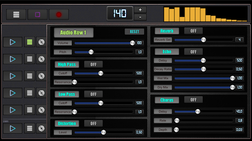 You can customize the sequencer of each audio channel(row). Simply tap on the option button of audio channel to open audio effects and sound filters panel that allows you to adjust the volume, pitch, and other aspects of the music.