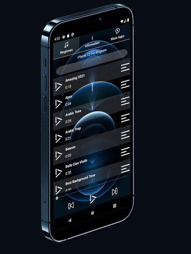 Apply the ringtone to your phone or particular contact in just few simple steps. First select your desired ringtone from the list and then you will be prompted with four Particular options named As Set as Default ringtone through which it will be applied for your caller tune. Assign to a Particular contact and this will set the ringtone for your desired contact. SMS or Notification this will set the ringtone for SMS or Notification. Alarm Ringtone, this will replace your alarm ringtone with our particular ringtone of your desire. You can also share the ringtone with your friends and family. You can also share the Phone 12 pro ringtones app.