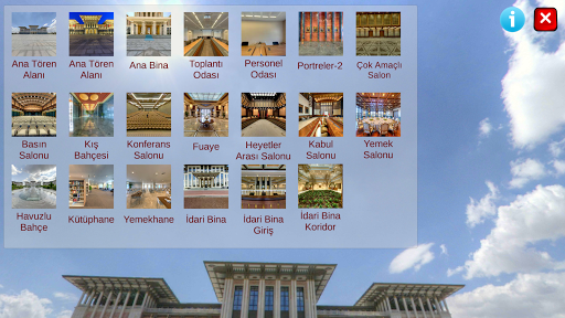 Bu uygulama ile, yeni yapılan Türkiye Cumhuriyeti Cumhurbaşkanlığı Sarayını (Külliyesini) telefonunuzda 360° olarak inceleyebilirsiniz.
