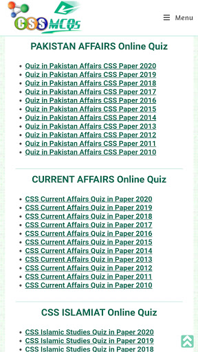 > Provides Online Quiz in CSS Compulsory Subject MCQs from 2001-2020