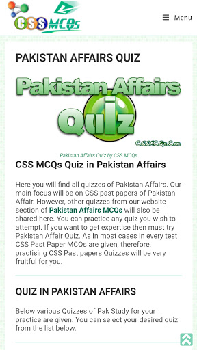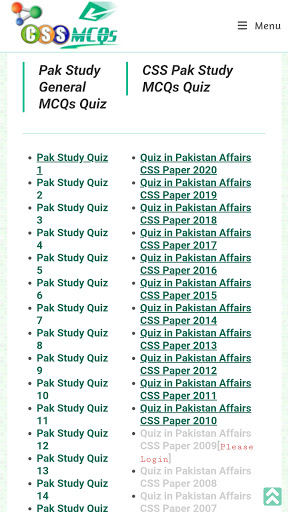 CSS MCQs Exam Notes Quiz Test Preparation for 2022 is Pakistan's largest MCQs Website APP for CSS, PMS & All Other Competitive Exams. With CSS MCQs Exam Notes which will help you in Quiz and Test Preparation for the exams of 2022 and onwards, you can find solved MCQs for the online preparation of CSS Exams.