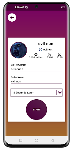 After you download the application, choose an image from the four images on the main page of the evil nun video call game application ,And then select the time when you want to receive the fake call, for example, directly or after several minutes and press the start button, you will automatically exit from the application and the call comes after the time you chose, which makes the video call with evil nun look real.