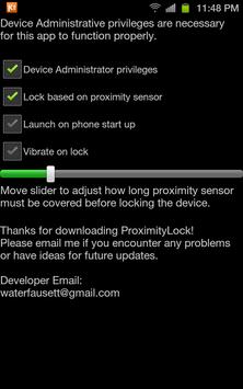Proximity Lock will lock your device when the proximity sensor detects that it is covered for an amount of time. Putting your device in your pocket will automatically lock your device!