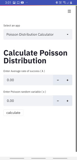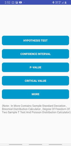 tests and important calculator such as Hypothesis test calculator, Binomial Distribution calculator , poisson distribution calculator and confidence interval calculator and many more.