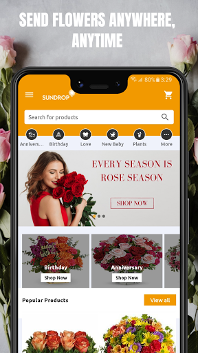 Download SUNDROP and enjoy a pleasant experience! Your choice of "Fresh Flowers", "Indoor Plants" or "Gourmet Baskets". We serve you in over 75 countries.