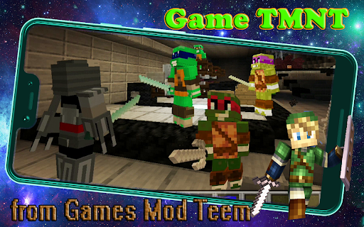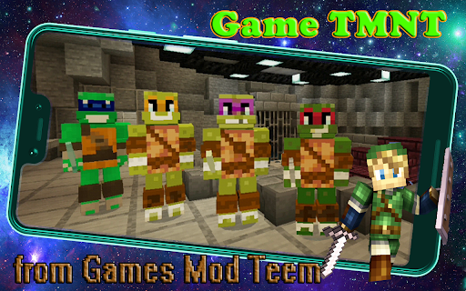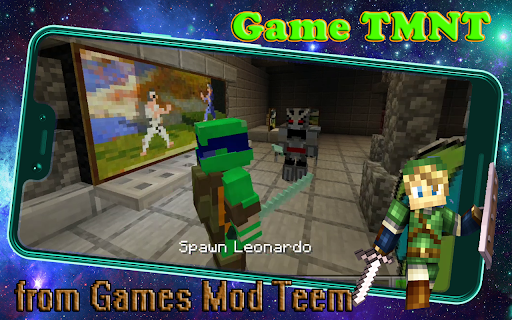 This app content Minecraft Games Mod Teenage Mutant Ninja Turtle - TMNT superheroes. You can download & install TMNT games mod for free. This mod allow you add to any MCPE maps and games superheroes Turtles Ninja: Leonardo, Michelangelo, Donatello and Raphael. Their main enemy Shredder - also present in mod. Teenage Mutant Ninja Turtles will help you in Minecraft with zombies, skeletons and monsters. Also in the TMNT game you will find ninja traders from whom you can buy weapons.