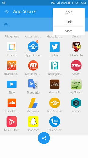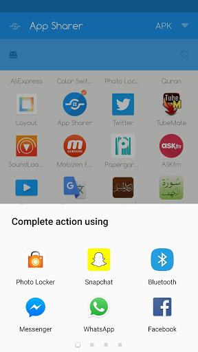 With app sharer you'll be able to send your installed apps through Bluetooth, but also through email if you wish, using native Bluetooth file sender, Dropbox, Facebook, Slack or whatever you have installed.