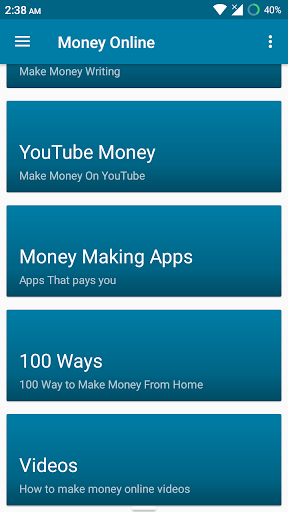 Make money Online app shows you how to utilize your free time and make money online on your free time and it can be done anywhere in the world from home, all you need is a smartphone or a laptop with internet access and you good to go.