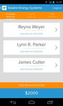 Solaire Energy Systems is a free App available for anyone to download and is used for those that want to earn rewards by sending referrals to Solaire Energy Systems. It is as simple as downloading the App, selecting the sales rep and registering. Once registered, you can begin sending referrals right away. It is the one app that will allow the user to easily submit referrals to Solaire Energy Systems and track the progress of your referral and rewards right on your mobile device. Referring has never been so easy.