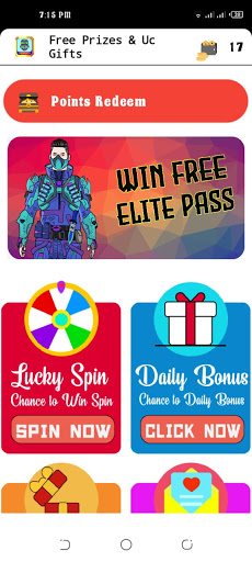 Free UC and Royal Pass Gifts is earning uc app you can watch video or Lucky Spin to reward points then change to the new uc or royal pass free season by your id.