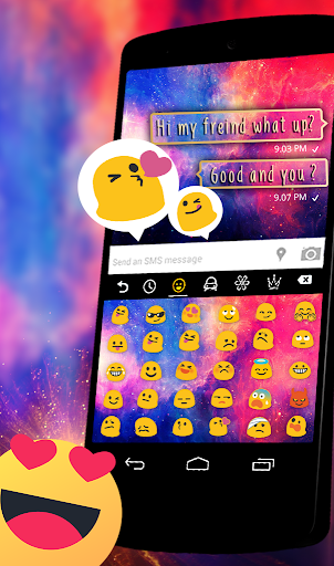 Galaxy keyboard theme helps you fast input A lot of keyboard emoji,Emoticons,everywhere like Allo, Facebook, Twitter, Instagram, WhatsApp, MeetMe, Chatous, Badoo, SKOUT, WeChat, Messenger, KakaoTalk, LINE, and any social apps straight from this emoji app.