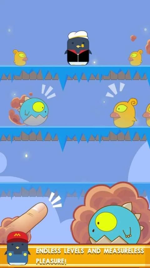 Ice floe is melting and sea rising! How can penguin who can’t fly survive? Just jump upward! Keep jump and don’t touch any other animals!