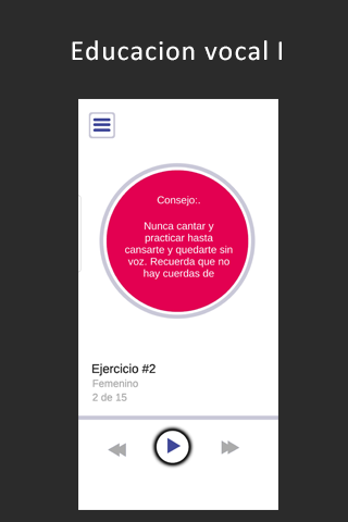 私たちのアプリケーションであなたはあなたの声を洗練することができます、そしてあなたは本物の親約権を持つプロのプロのものとして歌うことを学ぶでしょう。 メンズエクササイズ - 女性の練習 - レッスン