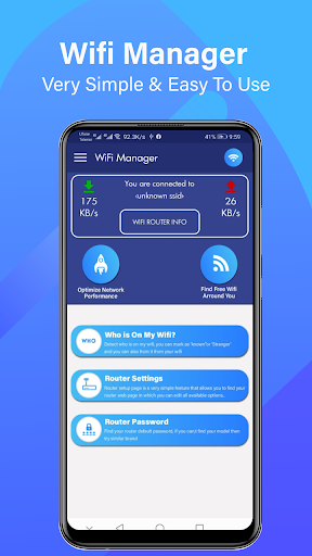 Wifi Manager app Also know details of secured and unsecured WiFi around and Get full details of WiFi connections before connecting to a WiFi connection. Its Get Full details like, signal strength, frequency, distance, Mac Address, security, etc, It manage WiFi on/off while phone charging, when battery level goes to low, set particular time to switch on/off, etc,