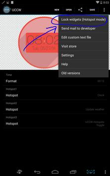 To disable hotspots and re-edit them, just go into the UCCW app from the app drawer, and press settings, then select "Lock Widgets (Hotspot Mode)", then select "Off".