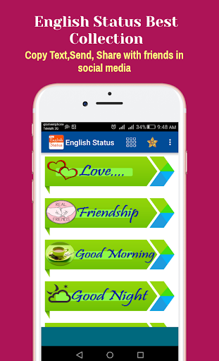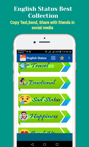 Update Your status in social media within a second without any think just installed our apps & select category from all common status category then copy text & past it in social media.