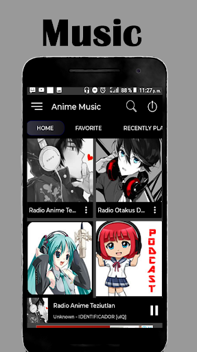 Anime music contains more than 20 radio stations that broadcast different musical genres at any time of the day and live.