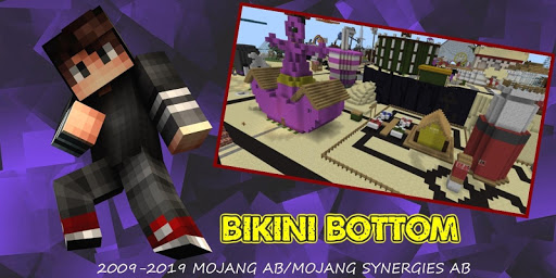 Also this Bikini Bottom Map contains two another mods and maps to play in craft inside, such as: 2. Lucky Blocks Mod ; 3. Bikini Bottom Mod. This app contains 8 thematic skins and wallpapers about this mod and 8 casual skins and wallpapers from craft universe. Skins and wallpapers are free and you can use them all.