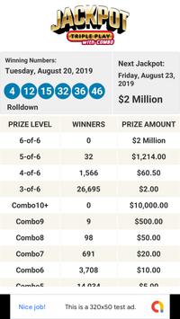 - Jackpot Triple Play results