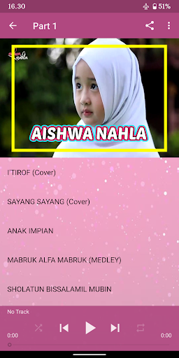 Colección de las últimas canciones Sholawat y Sholawat Aishwa Nahla Desconectado completo que se realiza en el año. Modo fuera de línea sin gastar su kouta, con una clara calidad de audio y agradable para escuchar a donde sea y en cualquier momento.