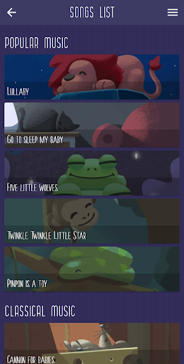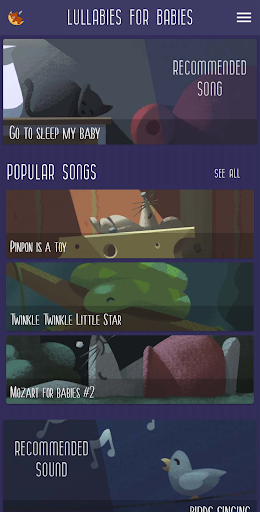 The best selection of lullabies and relaxing sounds for your baby including popular themes and classic songs that will only relax your baby and make him fall asleep much faster. In addition to making them relax when they feel any discomfort. All this with ease and in the comfort of your Android device!