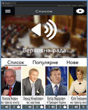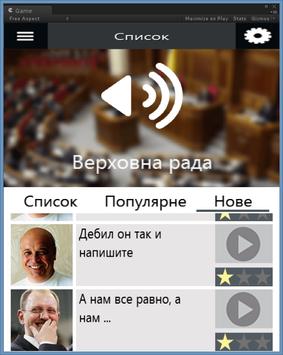 Как сказал в свое время господин Азаров: "...подумайте, що слова забуваються а справи залишаються". Для того, чтобы сохранить интересные, неповторимые, порой странные высказывания наших политиков было создано это приложение-сборник. Наслаждайтесь, анализируйте, делайте выводы. В будущем будет добавлено поле для ввода, для того, чтобы каждый мог добавить своего любимого политика и его крылатую фразу. Сейчас это можно делать в комментариях. В приложении представлены такие персонажи как Олег Ляшко, Виталий Кличко, Арсений Яценюк, Янукович, Азаров и другие. Почувствуйте себя в зале Верховной Рады Украины.