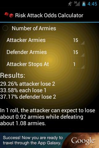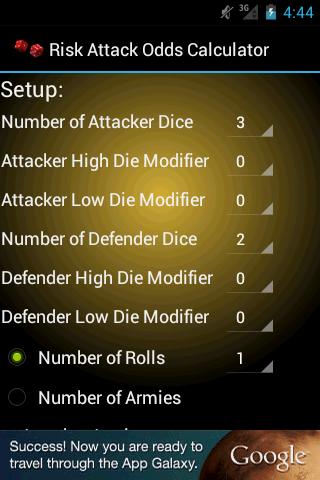 The Risk Attack Odds Calculator is meant to help out when playing the game of Risk by settling arguments between you and your friends about what the exact maths behind each attack are. Enjoy!