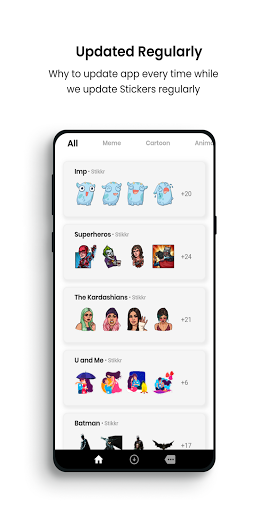 Stikkr Sticker App for WhatsApp hosts some best collection of WhatsApp stickers. We regularly update stickers so, you need not be updating your app every time. We also provide Status saver feature where you can download any Status from your WhatsApp contact with just one click and they will be downloaded to gallery directly.