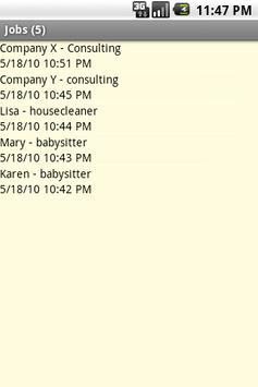 Tracks jobs' time & expenses. E-mail details in tab-delimited file to import into spreadsheet. Supports configurable time intervals, budgeting, and date spans. Automatically calculates money expected/owed based on rate and time spent; this is overridable for 1-off events.