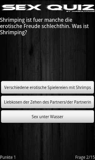 Mit diese quiz knnt Ihr endlich euer Wissen rund um das Thema Sex, Geschlechtsverkehr, Dildos, Sexstellungen Sexpositionen, Sexspiele oder euer Allgemeinwissenim Bezug auf Sex testen. Beweist euer euer knnen und verewigt euch in der Highscore Liste. Teste diese App auch mit Freunden, Bekannten und Verwandten um zu erfahren wer mehr ber das allgegenwrtige Thema bescheid wei