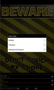 Phone Alarm is a Security Protection System App to protecte your phone or tablette from people whose touching your mobile without your permetion. you can control the devise Alarm Protection type,when the alert start and stop.