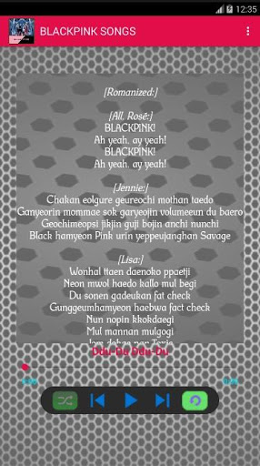 Blackpink song's application comes with lyrics in each song and this application can run OFFLINE (without the need for internet), is displayed interactively with clear images that make it easier for users, presented for FREE and can be saved in EXTERNAL MEMORY.