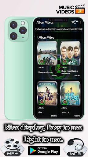 This application is very complete providing music videos from all JONAS BROTHERS, hopefully this application can provide satisfaction for every application user of from around the world.